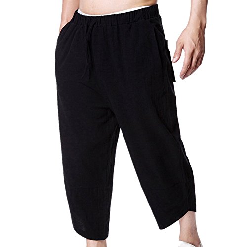 ロングパンツ メンズ Dafanet チノパンメンズ 大きいサイズ カジュアル 薄手 9分丈 クロップド ワイドパンツ 絶妙 シルエット 男性 デニム ゆったり サルエルパンツ 通気性抜群 夏用 M~2XL (XL, ブラック)