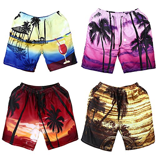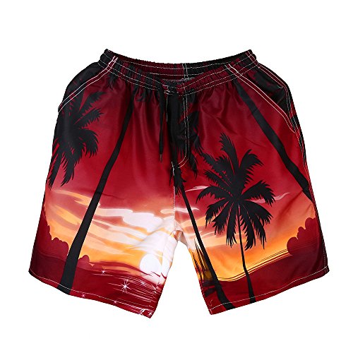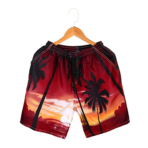 ショートパンツ メンズ Dafanet メンズ 水着 防水 速乾 海パン サーフパンツ サーフトランクス 海水パンツ サーフ系 膝上丈 薄手 スイムウェアー プリント 個性 ゆったり ハーフパンツ スポーツ 七分丈 短パンツ (XL, レッド)