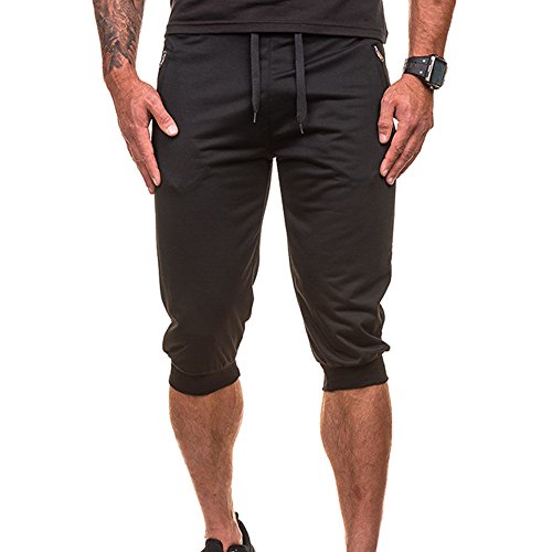 ショートパンツ メンズ Dafanet ハーフパンツ メンズ スポーツ 七分丈 スポーツ 夏 チノパン クロップドパンツ メンズ チェック ボーダー 切替 7分丈 短パン メンズ ジーンズ ポケット (L, ブラック)
