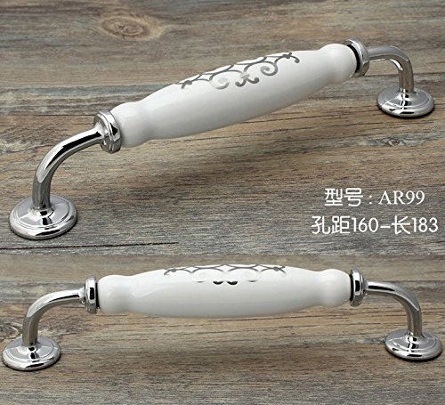 Dagly(TM)長さ183ミリメートル穴ピッチ160ミリメートル亜鉛合金キッチンキャビネット銀フラワープリントの磁器の引き出しと白の色を扱う引っ張ります