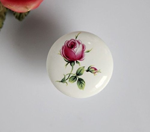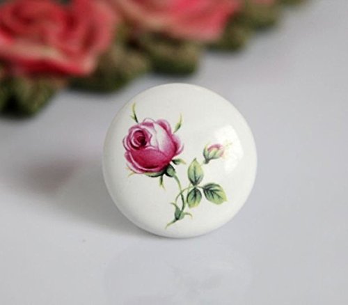 Dagly(TM)バラのフラワープリントとDia.38mm = 1.5インチシングル穴セラミックノブキッチン家具ノブキャビネットノブの引き出しのノブ