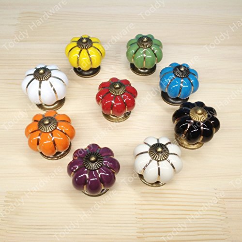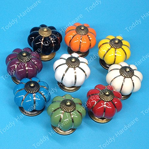 Dagly(TM)10個入りキッチン家具プルカボチャの形の牧畜セラミックノブ様々な色単穴knobdrawerノブDia.40mm