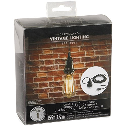 40 watt 120 volt maximum bulb. Rustic, bare bulb light fixtures are simple lighting accents that bring high amounts of character into your home. Create your own hanging light fixture with the Cleveland Vintage LightingTM single socket cord. Featuring a fabric covered cord, this piece includes bulb socket and hanging hardware with easy to follow instructions. This hanging socket cord can also be turned into a pendant lamp with the addition of a shade, sold separately. Designed with inspiration from the early 20th century, the Cleveland Vintage LightingTM collection features a wide variety of unique lighting accessories that stylistically create a nostalgic and illuminated look.•Black socket •15.5 foot black cord, featuring on/off switch •Includes 1 socket cord, 2 cord clamps, and 2 ceiling hooks •Easy to follow instructions •Intended for indoor use •Use with 40-watt or less lightbulbs •Lightbulb and shade not incl