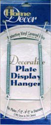 DARICE-Expandable Plate Hanger. 7.5 to 9.5 in white. Holds up to 2 pounds. Protective vinyl covering won't damage delicate plates. Brass finish hangers resist tarnishing. Gently hook ends of hanger over the top of plate stretch and hook ends over opposite side of plate.