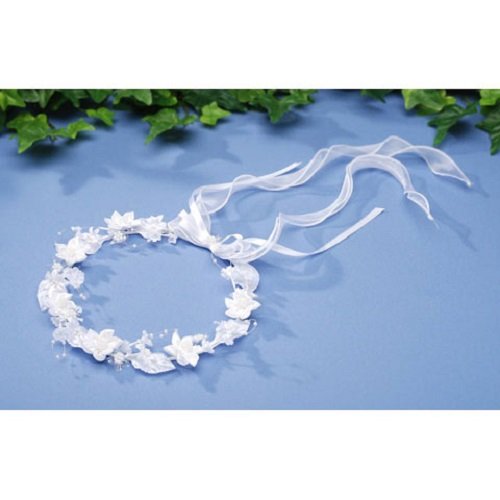 - 頑丈なホワイトフレームにホワイトサテンのリボン花とホワイトは、シルクフラワー、小粒パールとパールが飛び散りがアクセント