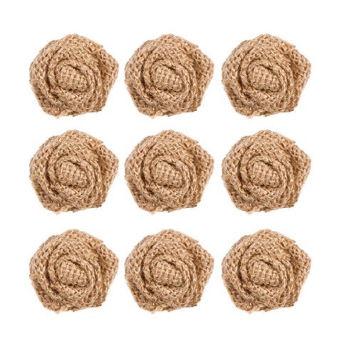 9 Piece Rolled黄麻布生地ロゼット|シャビーシックナチュラル黄麻布カラーSmallローズ花