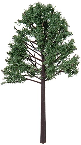 This green diorama trees with flocked leaves. Full trees working up to a rounded top, with a slightly shorter body, that are covered with a fiber like green powder, giving them a living tree appearance. Great for model trains, doll houses, school projects and other small scale displays. Diorama products are an enchanting line of miniatures for creating fascinating scenes. Measures 5-1/8-inch height. Each package contains two trees with plastic stands.