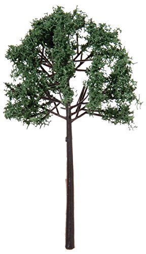 This green diorama trees with flocked leaves. This rounded trees that are covered with a fiber like green powder, giving them a living tree appearance. Great for model trains, doll houses, school projects and other small scale displays. Diorama products are an enchanting line of miniatures for creating fascinating scenes. Measures 4-inch height. Each package contains two trees with plastic stands.