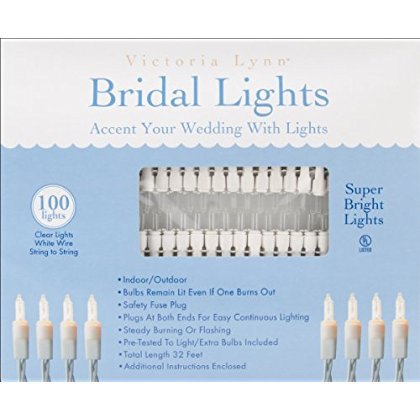 Size:Glossy Exclusive Paper Darice's Victoria Lynn Light Set contains 100 Clear Bulbs. The light set has white cord and is designed for Indoor or Outdoor use. Choose between Steady Burn or Flashing Options. These bulbs include a safety fuse and the rest of the strand will remain lit if one bulb burns out. Includes a plug at both ends for continuous lighting options. UL listed.