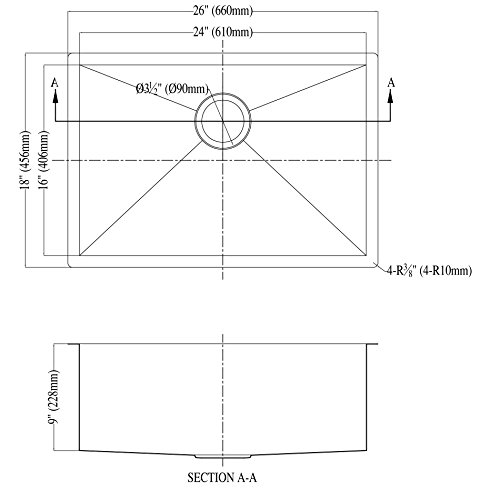 daweier esq240900 Squareシンクシングルボウル、18ゲージ