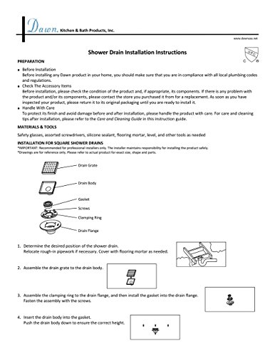 - Strongly recommend to purchase Dawn shower drain base Sdb060205 for the installation of Dawn shower drain