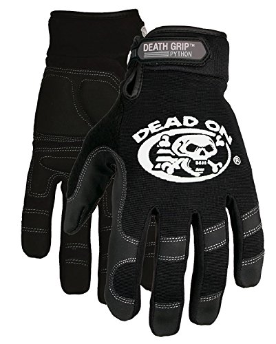 Heavy-duty stretch nylon reinforced fourchettes. Dead On Python Anti-vibe Glove. These gloves feature Super durable Non-Slip PVC palm reinforcement. Full finger style for maximum protection. Full reinforcement at critical finger stress points. Heavy duty stretch nylon reinforced forchettes. Durable stretch nylon top of hand material. Three 3mm thick palm pads for extra padding. One piece saddle construction. Terry cloth brow wipe on thumb. Mesh support cuff & Velcro adjustable strap.