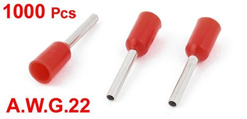 1000個E0508??レッドワイヤークリンプ絶縁フェルールピンコードターミナルAWG22