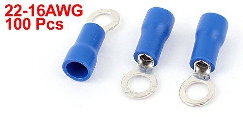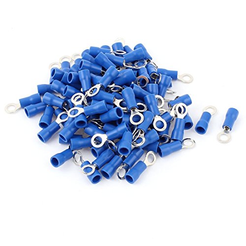 100個1.25-4Sワイヤーコネクタリング圧着端子ブルー22-16AWG