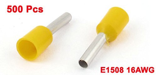 500枚E1508 16AWG絶縁フェルールピンワイヤーコードエンドターミナルイエロー