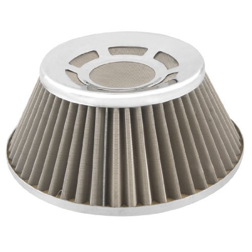 DealMuxオートカー交換76ミリメートル3吸気テーパードエアフィルターシルバートーン