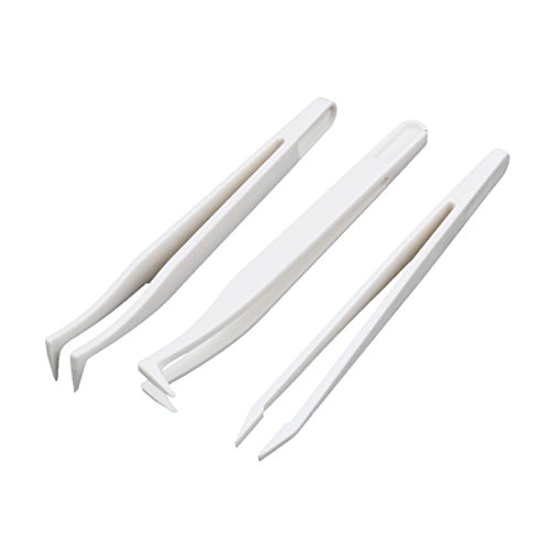 抗静的プラスチックフラット湾曲した先端ピンセットニッパー(3ピース)、12センチメートル、ホワイトa14082500ux0006