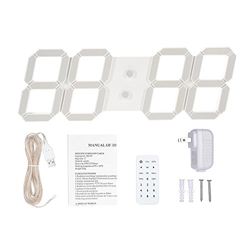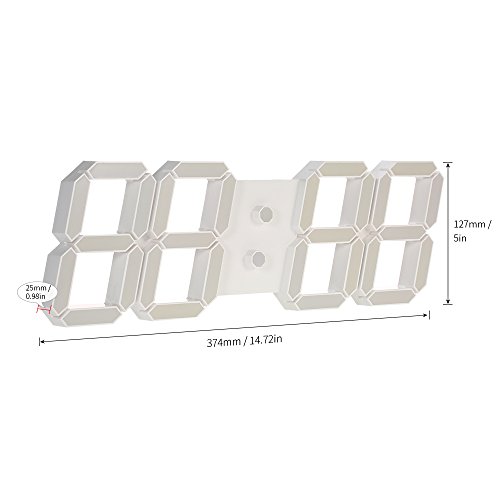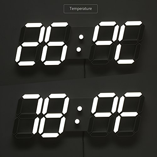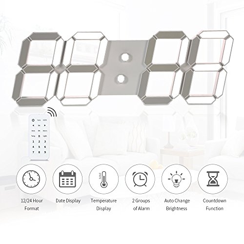 Decdeal 多機能 大型 LEDデジタル ウォールクロック リモートコントロール 目覚まし時計 12H / 24H 時間日付 輝度調整可能