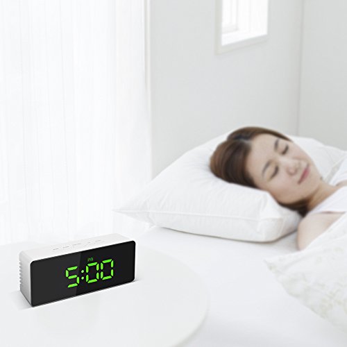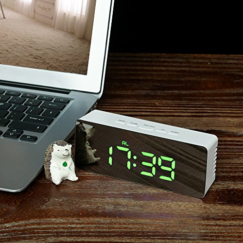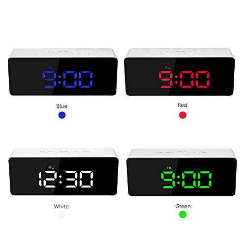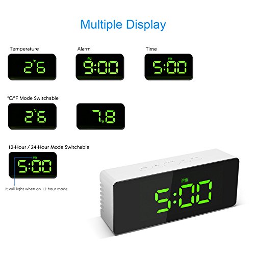 Decdeal LED ミラー クロック 12H / 24Hアラーム デジタル スヌーズ機能付き °C /°F表示可能 屋内温度計 輝度調整可能