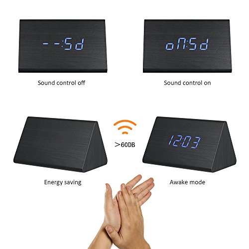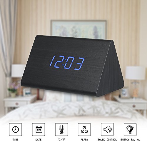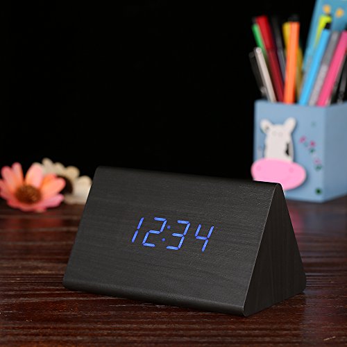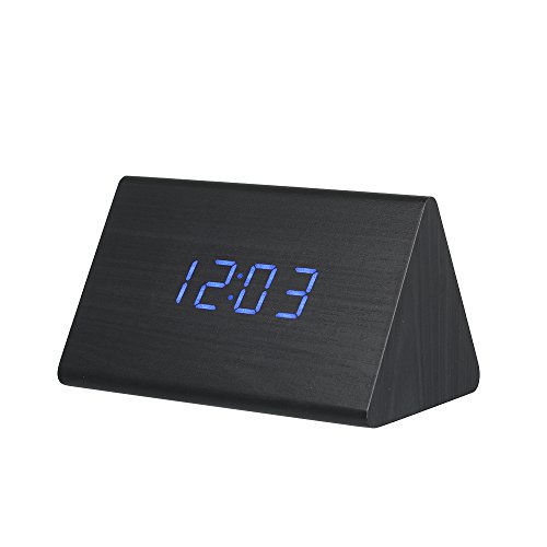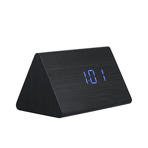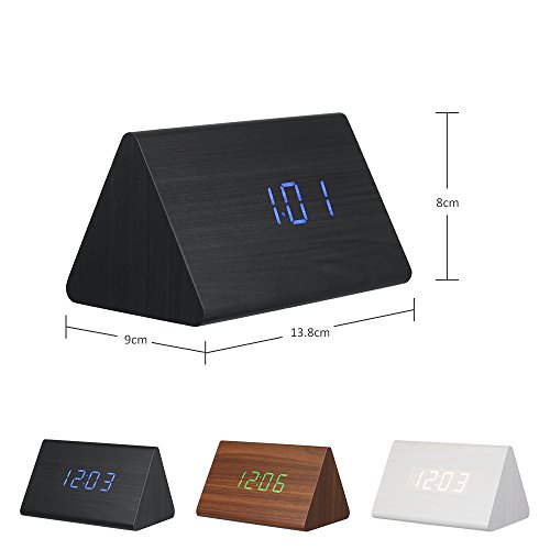 Decdeal 電子時計 LEDディスプレイ 音制御 アラーム/時間/温度 木製 三角形