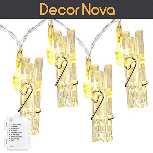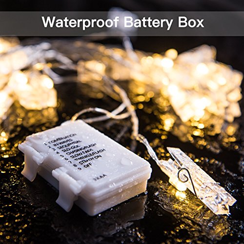 フォトクリップ文字列ライト、decornova 16.4-feet 20-led-clip ip44防水8モードOrnamentalフェアリーライト3 AA電池ボックス付き、暖かいホワイト