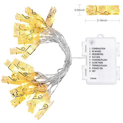 - 暖白色カラー&フォトクリップ: 20 LEDクリップの合計値を表しています。暖かい白色の一緒にし、写真のクリップを使用してロマンチックな照明効果、LEDストリングライト屋内と屋外装飾。あなたの寝室を装飾する写真を使ってクリップするだけ。