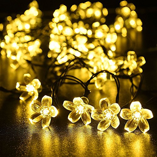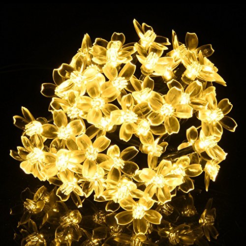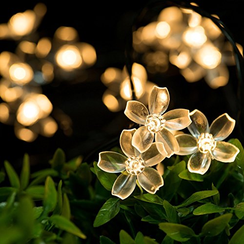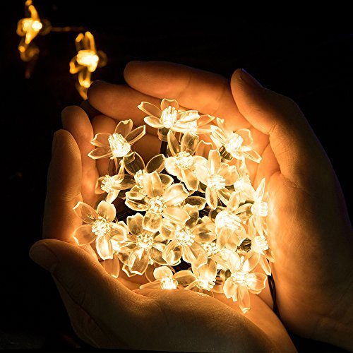 ストリングライト 6M 50球 花型 LEDイルミネーションライト ソーラー充電式 イルミネーションライト 電球色 ガーデンライト