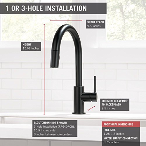 Delta Faucet Trinsic 台所用蛇口 シングルタイプのプルダウン型ハンドル マグネット式接合 9159-BL-DST 1