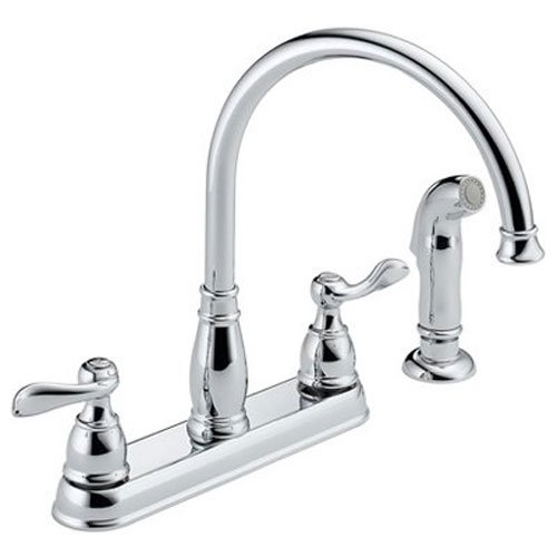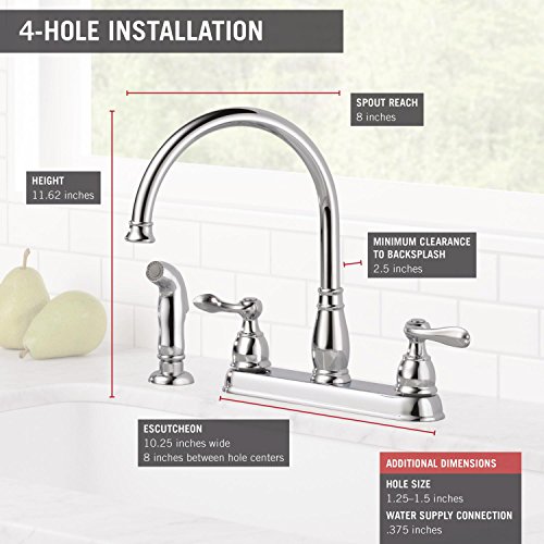 Windemere Series. 2 S lever handles, 4-hole 8" center installation, high arc spout, 8" L. and 11-5/8" H. with 360 deg. swivel. Matching vegetable sprayer. Replacement cartridge model No. RP41701, 1.8 GPM (gallons per minute) flow rate, 1" maximum deck thickness, 1/2" I.P.S. connections, ADA compliant. Complies with California lead-free law AB1953. Lifetime faucet, parts and finish warranty to the original purchaser. Manufactured to include no more than 0.25% weighted average lead content on wetted surfaces. No. 21996LF: Finish: Chrome, Mounting Center Size: 4 Hole, 8" Center, Connection Size: 1/2" IPS, Number Of Handles: 2S-Lever, Flow Rate: 1.8 gpm, Spout Length: 8", With Sprayer?: Yes No. 21996LF-SS: Finish: Brilliance Stainless Steel, Mounting Center Size: 4 Hole, 8" Center, Connection Size: 1/2" IPS, Number Of Handles: 2S-Lever, Flow Rate: 1.8 gpm, Spout Length: 8", With Sprayer?: Yes No. 21996LF-OB: Finish: Oil-Rubbed Bronze, Mounting Center Size: 4 Hole, 8" Center, Number Of Handles: 2 Lever, Flow Rate: 1.8 gpm, With Sprayer?: Yes ---- 1. 海外直輸入品となりますので、新品であっても、パッケージに多少のダメージがある場合もございますが、商品本体には問題ございませんのでご安心ください。2. 日本国内でのメーカーによる製品保証等は適用されません。3. パッケージや、説明書等は、英語表記となります。