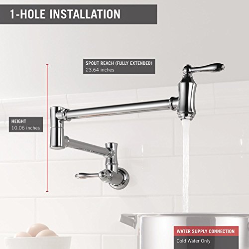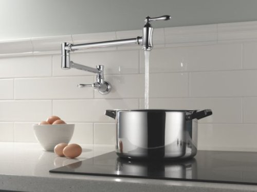 Delta Faucetsのビクトリアン壁取り付け型ポットフィラー蛇口で調理鍋に水を入れることが、これほど楽しくて簡単であったことはこれまでにありませんでした。