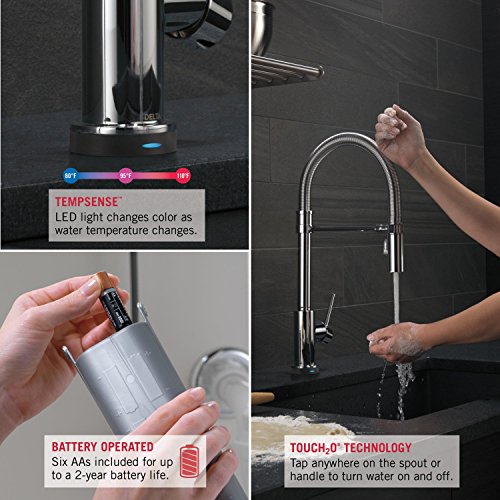 - Turns on and off with just a touch anywhere on the spout or handle