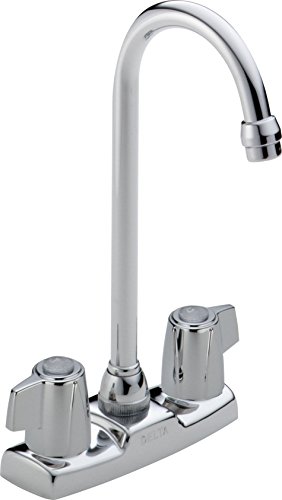 ADA compliant when installed properly. Reliable in design, the Delta Classic 2171LF Double Blade Handle Bar / Prep Faucet has a clean and elegant styling that's sure to catch your eye. It's made to endure from solid brass while the chrome finish rounds out the look. About Delta Faucet Pairing inspirational design with innovations that anticipate people's needs, Delta produces kitchen faucets, bathroom faucets, and shower systems that are as beautiful as they are functional. Delta puts all of their products through a strict regimen of durability testing. Delta Faucet is committed to green manufacturing processes and helping people to be smarter and more environmentally responsible in how they use water. All of these things add up to show how Delta is more than just a faucet. For installation with 2 or 3 holes on 4-in. center. Solid brass construction ensures quality and reliability. Long-lasting chrome finish. Convenient arc spout swings 360 degrees. 1.5-gpm flow rate. Features clear knob handles. Dimensions: 14.9L x 10.2W x 2.9H in..