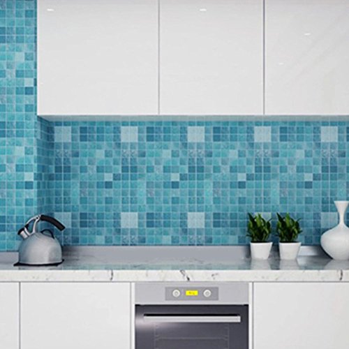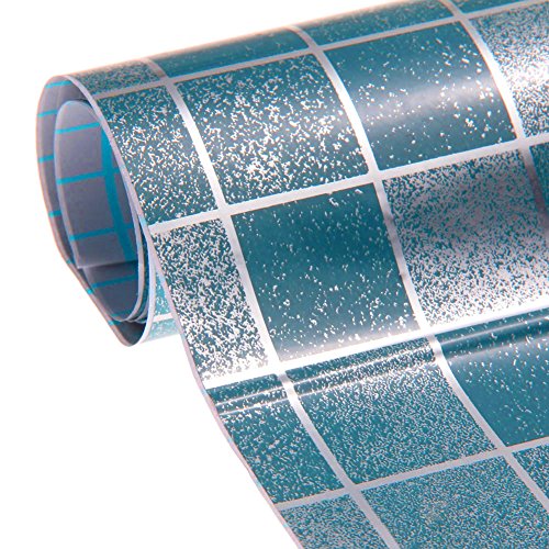 Demiawaking 壁紙シール 粘着式 DIY かんたん貼付シールタイプ リフォーム ウォールステッカー グリッド 格子縞 防水 防汚 耐熱性 キッチン 洗面所 トイレ 45cm×200cm (ブルー)