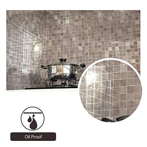 Demiawaking 壁紙シール 粘着式 DIY かんたん貼付シールタイプ 45cm×200cm リフォーム ウォールステッカー グリッド 格子縞 防水 防汚 耐熱性(キッチン 洗面所 トイレ) (ブラウン)