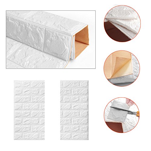 Demiawaking DIY ウォールステッカー レンガ模様 PEフォーム 防音性 耐衝撃性 防水 貼るだけ 3D インテリア 白い (柄1)