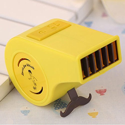 Demiawaking 手持ちミニ扇風機 おしゃれ 電池 USB  呼子形 首にかけて運ぶ 防暑有効 四つ色可選択 (黄色)