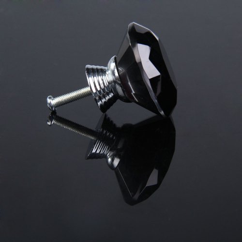 Demiawaking 取っ手 ダイヤモンド形 つまみ 引き手 ドア/引き出し インテリア 水晶の取手 高級感 アンティーク 10個セット 40mm ネジ付き ブラック(10個)