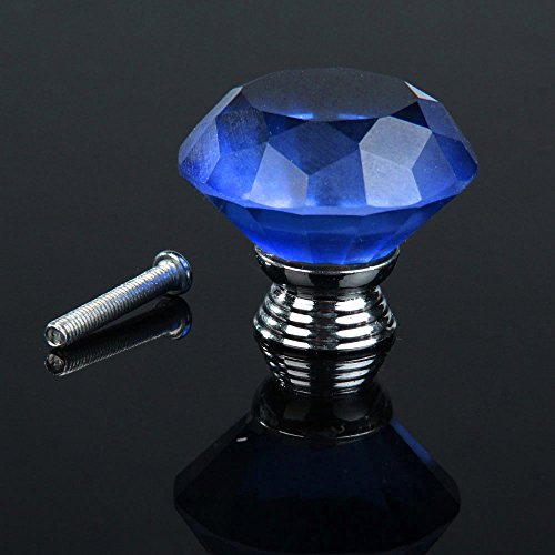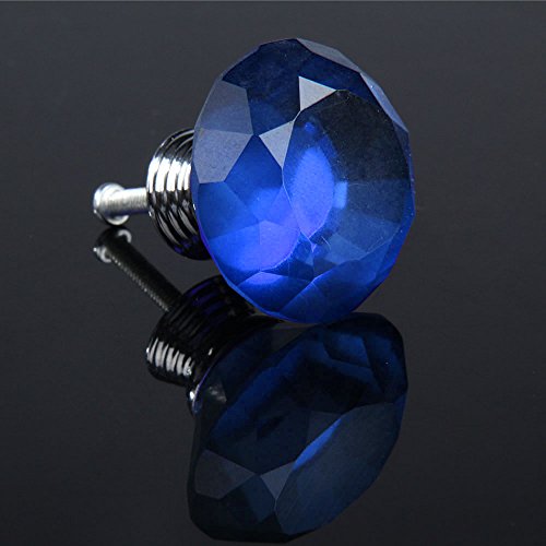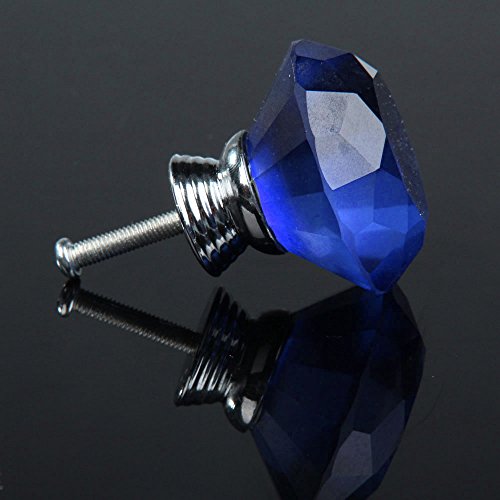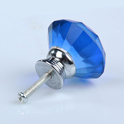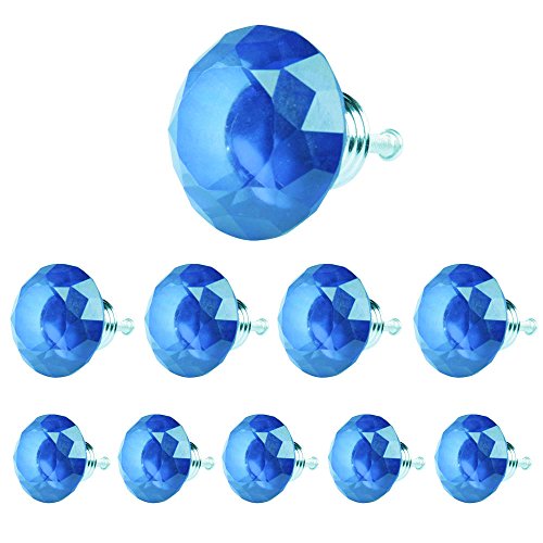 Demiawaking 取っ手 ダイヤモンド形 つまみ 引き手 ドア/引き出し インテリア 水晶の取手 高級感 アンティーク 10個セット 40mm ネジ付き ブルー(10個)