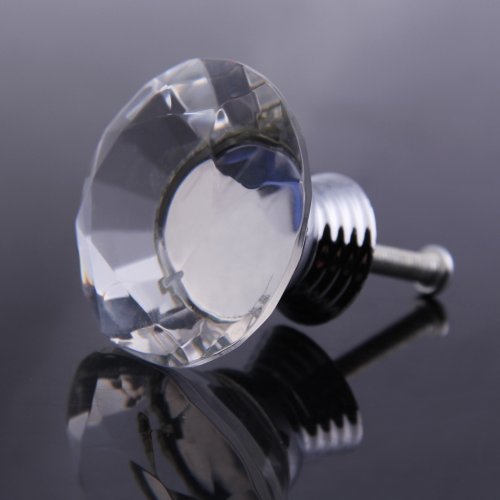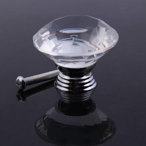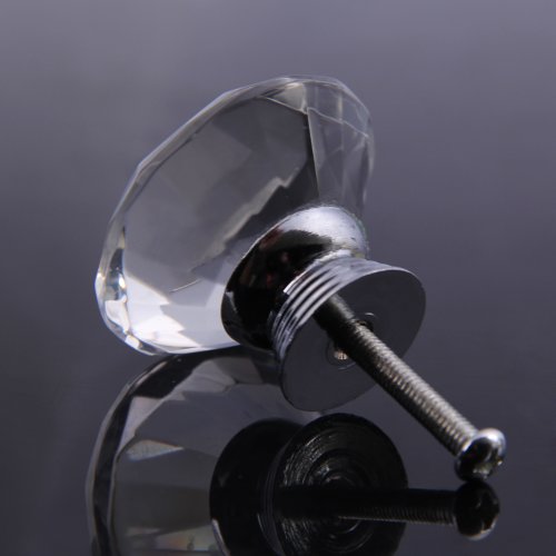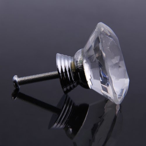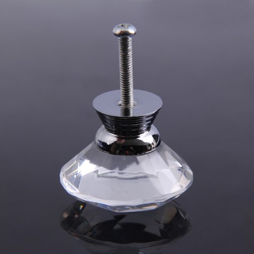 Demiawaking 取っ手 ダイヤモンド形 つまみ 引き手 ドア/引き出し インテリア 水晶の取手 高級感 アンティーク 10個セット 40mm ネジ付き クリア(1個)