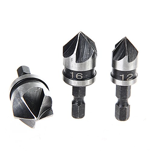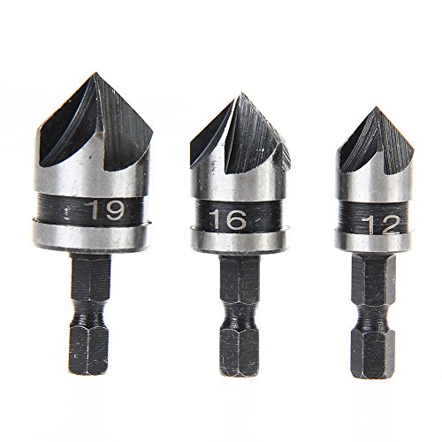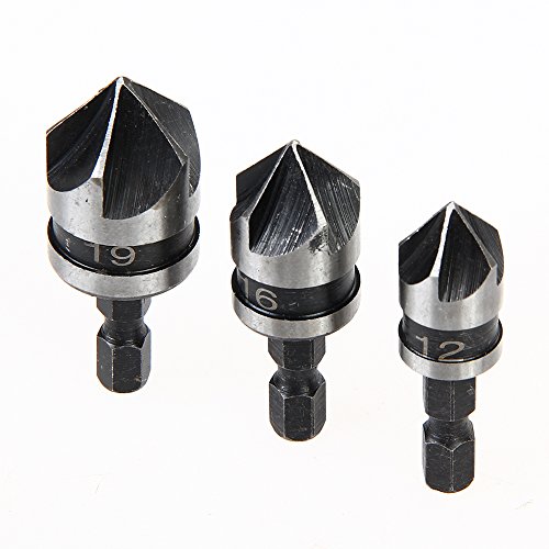 Demiawaking 面取りカッター バリ取り ドリルビット 1/4インチ 六角軸 6mm-19mm 90度 穴あけ カウンターシンク 3本セット