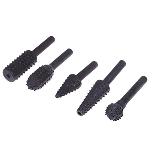 Demiawaking 回転ヤスリ ロータリーバーセット 高速度鋼 木工用 超硬バー 木彫り 木工アクセサリ 5pcsセット