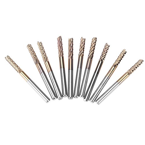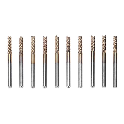 Demiawaking 超硬 10本/セット チタン・コート・カーバイド エンドミル 彫刻ビット ビッド 高速度 工具 切削 木工 研磨用 彫刻ビット 切削エッジ径(CED):3.0mm