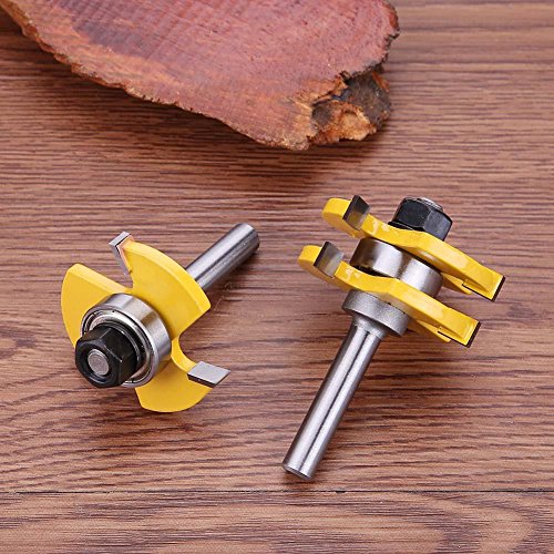 Demiawaking T型ほぞカッター 木工カッター 木工ドリルビット ルータービット 木工用 イエロー 8*1/4シャンク 2本入り