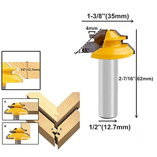 Demiawaking ほぞカッター 木工カッター 木工ドリルビット ルータービット 木工用 イエロー 1/2シャンク 45度幅1-3/8 1本入り