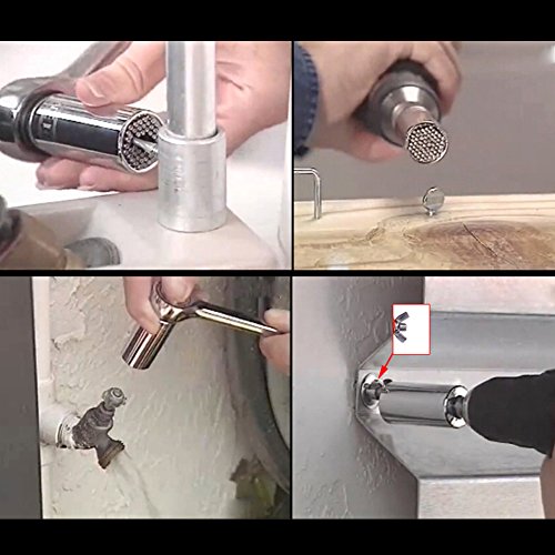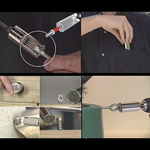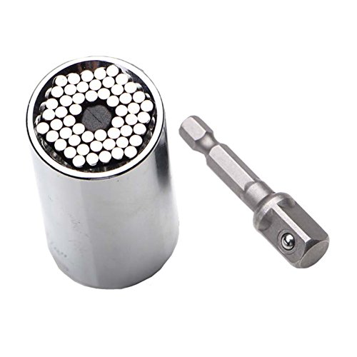 Demiawaking 万能 ソケットレンチ 2点セット 作業工具 ユニバーサル ソケットアダプター & ドリルアダプターセット シルバー