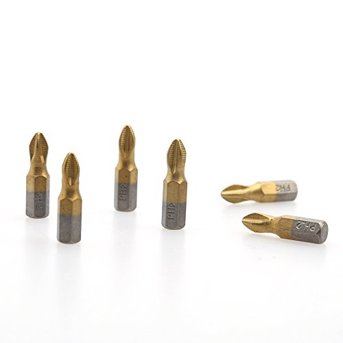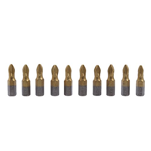 Demiawaking 10pcs 1/4 PH2 スクリュードライバビット チタンコーティング クロス 磁気 25mm 滑り止め
