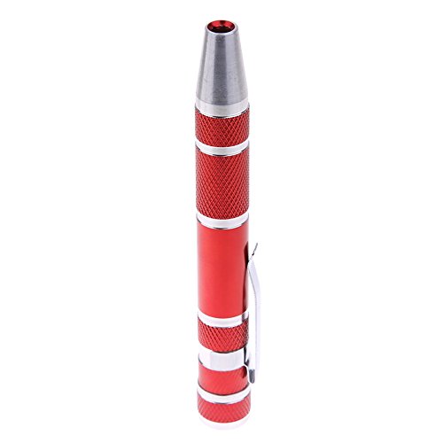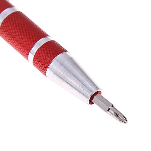 Demiawaking ドライバーセット ペン型 プラス マイナス 8種 差替式ドライバー 4色 (レッド)