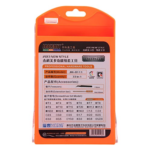 - セット内容:1×ドライバーハンドル、1×ピンセット、1×磁気ストライプ、1×プラスチックケース、30個×ドライバービット