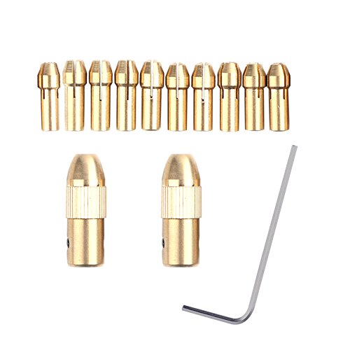 Demiawaking 12pcsセット 小型電気ドリルビット ドリルコレット ドリルチャックセット 真鍮 0.5-3.2mm