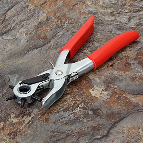 Demiawaking 回転式穴あけパンチ 革工具 DIY工具 丸穴6サイズ 革細工 レザーツール レッド